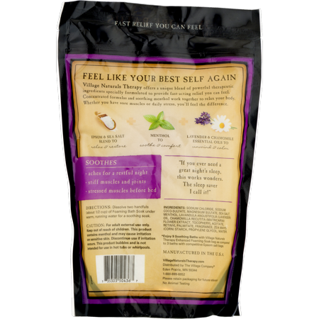 - Enhanced foaming soak with spoon salt, soothing menthol & important oils.