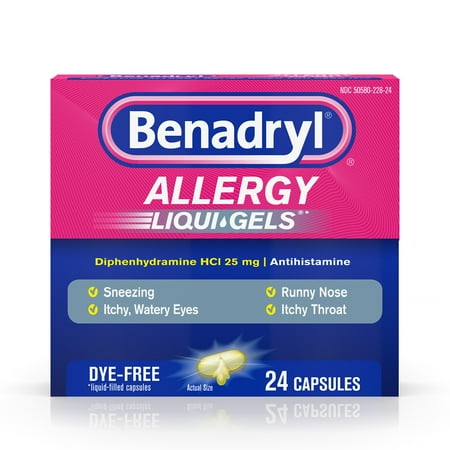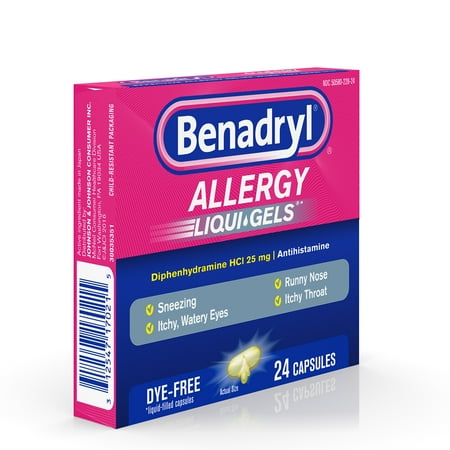 - 24-count bottle of Benadryl Liqui-Gels antihistamine allergy drugs