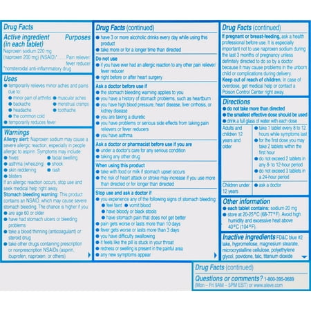 Aleve Ache Reliever/Fever Reducer Naproxen Sodium Tablets, 220 mg, 100 Ct