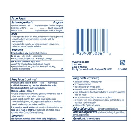 Vicks VapoRub Authentic Cough Suppressant, Topical Analgesic Ointment, 1.76 oz, Finest used for aid from chilly signs, aches, and pains: